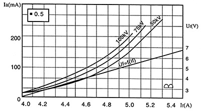 燈絲特性(V) | Ifmax=5.5A時,Uf=5~7v(小) |